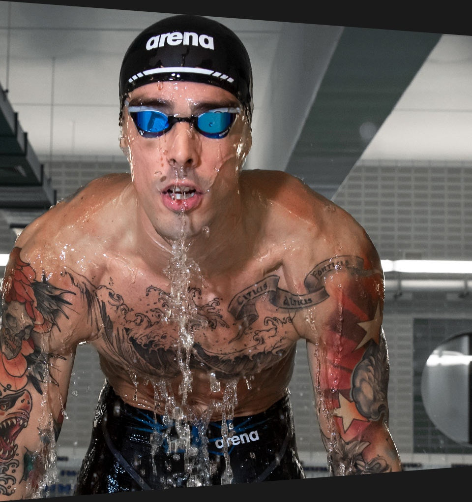 The innovative arena unisex Goggles Cobra Core Swipe Mirror are perfect for fitness and competitive swimmers, and triathletes. The revolutionary arena Swipe Anti Fog technology lasts ten times longer and can be reactivated by swiping the lenses with your finger. Gently swipe the inner lenses five times with your fingertip while the goggles are in the water, making sure there is no dirt on the lenses while doing so. Do this every time lenses become foggy to enjoy clear vision for longer.